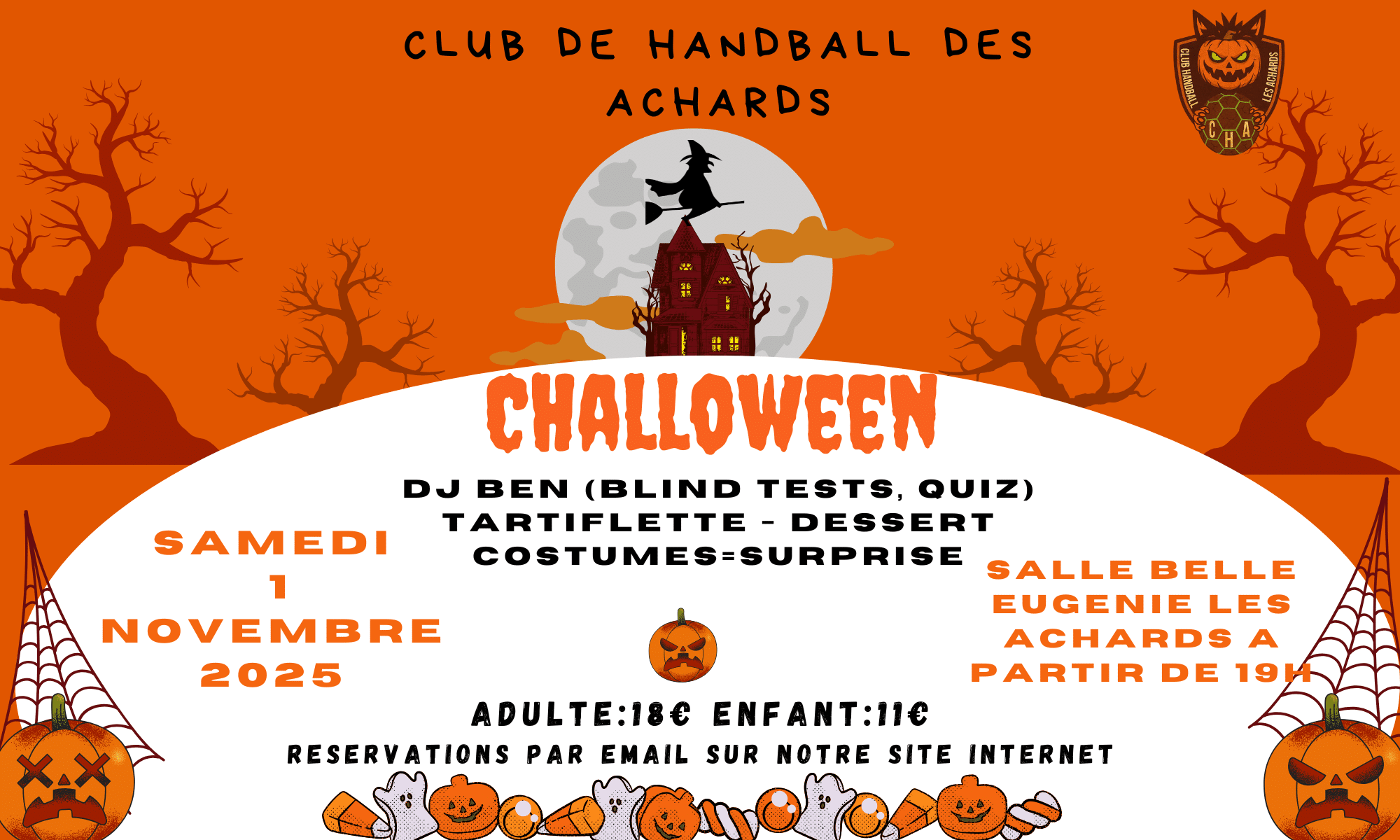 Organisée par le Club de Handball des Achards. DJ, tartiflette, dessert. Adulte : 18€ Enfant : 11€