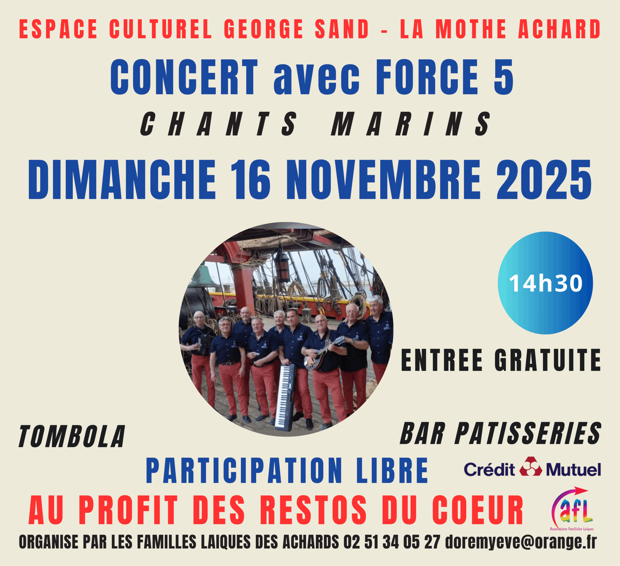 Concert avec "Force 5". Participation libre Réservations : 02 51 34 05 27 : doremyeve@orange.fr